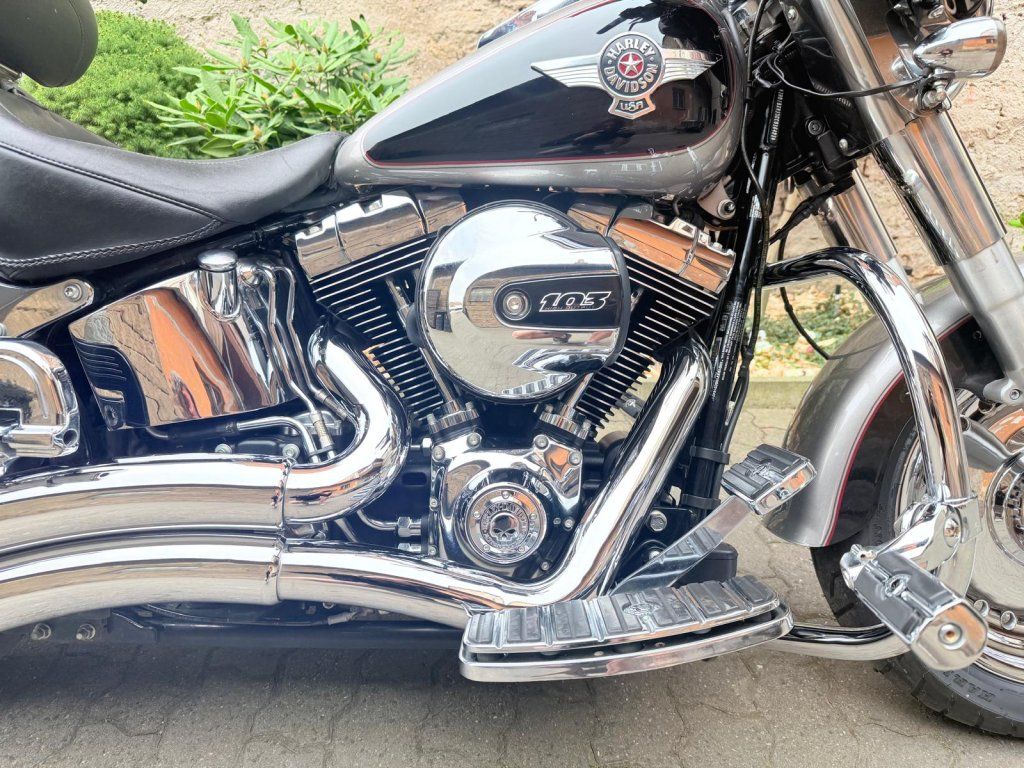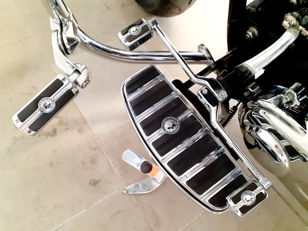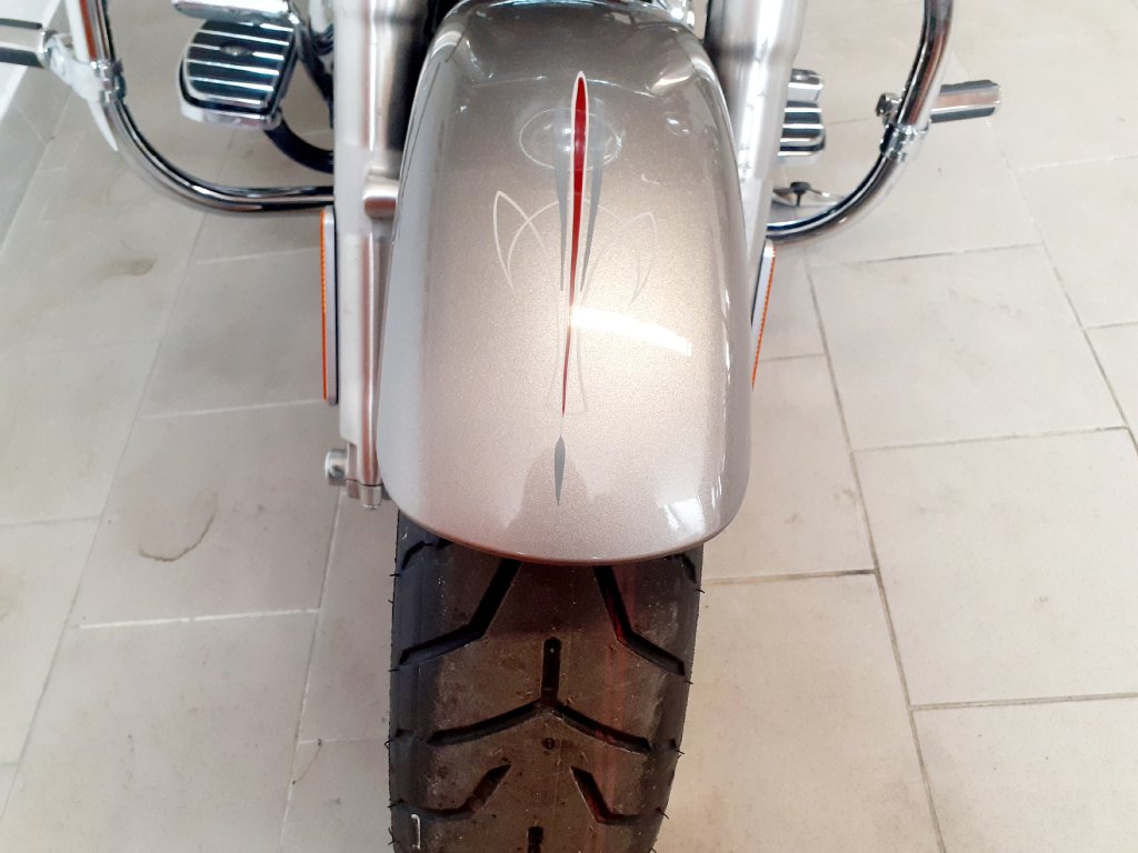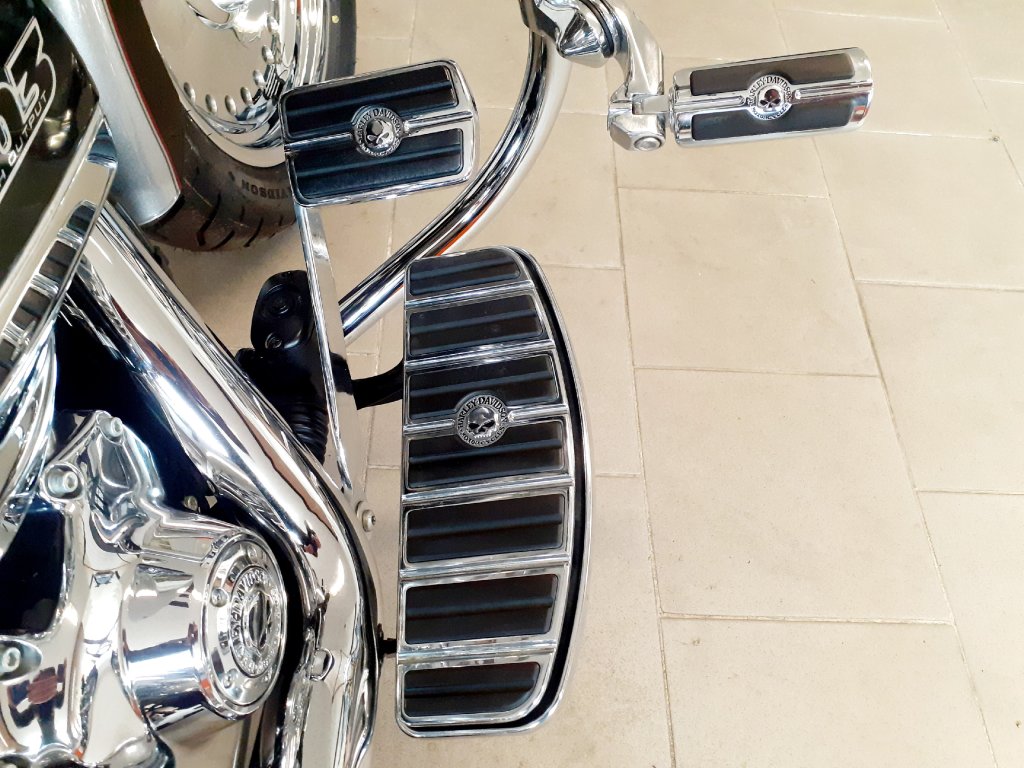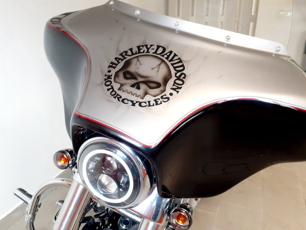 Krásně nastrojený Fat Boy s ABS a tempomatem. Přední maska Hoppe: Dotykový LCD display s USB/HDMI/CD/MP3/WMA, AM-FM, DVD. Stupačky řidiče, předkopy, pedály řezení, brzdový pedál, táhlo řazení, víčko spojky a kryt brzdového světla v designu H-D Willie G Skull. Boční brašny včetně držáků jsou originál H-D. Laděné výfuky Vance and Hines, padací rám, cestovní sedadlo Mustang s opěrkou pro řidiče a originál rychloupínací opěrka spolujezdce s nosičem. V ceně motocyklu je přihlášení, naše standardní roční záruka, nová gelová baterie a komletní olejový servis.