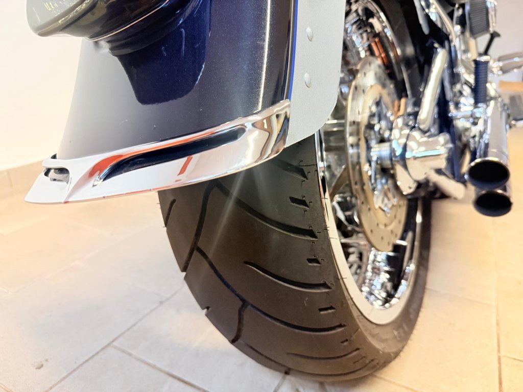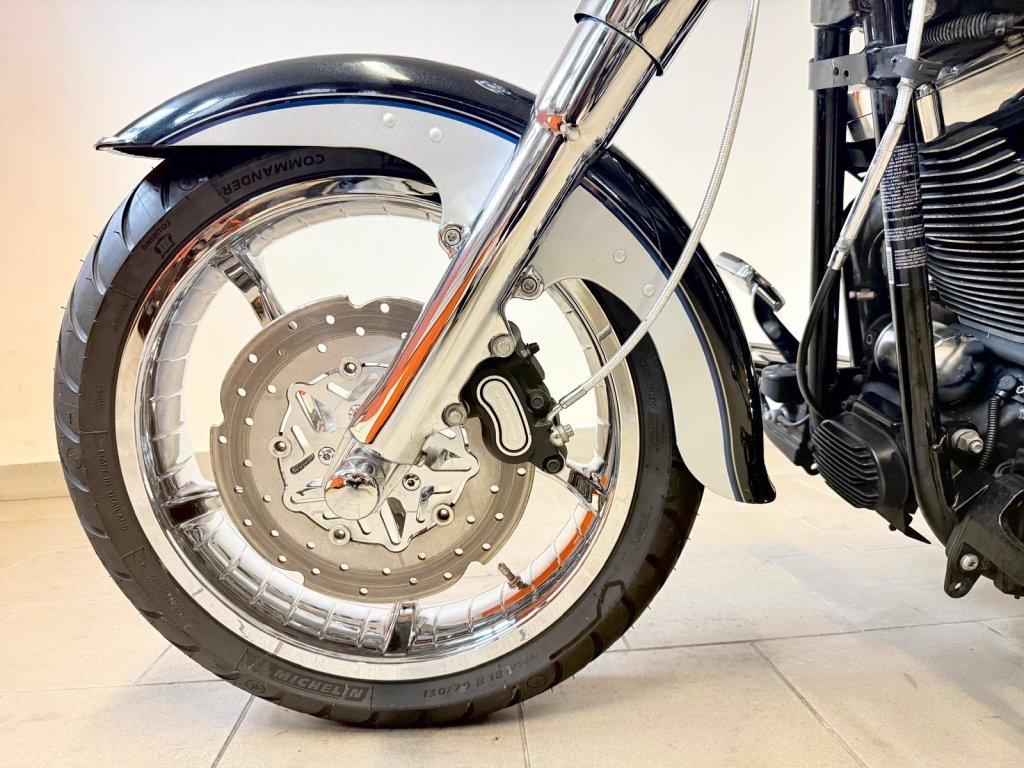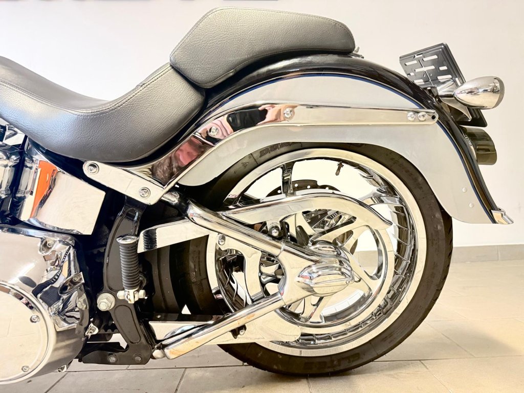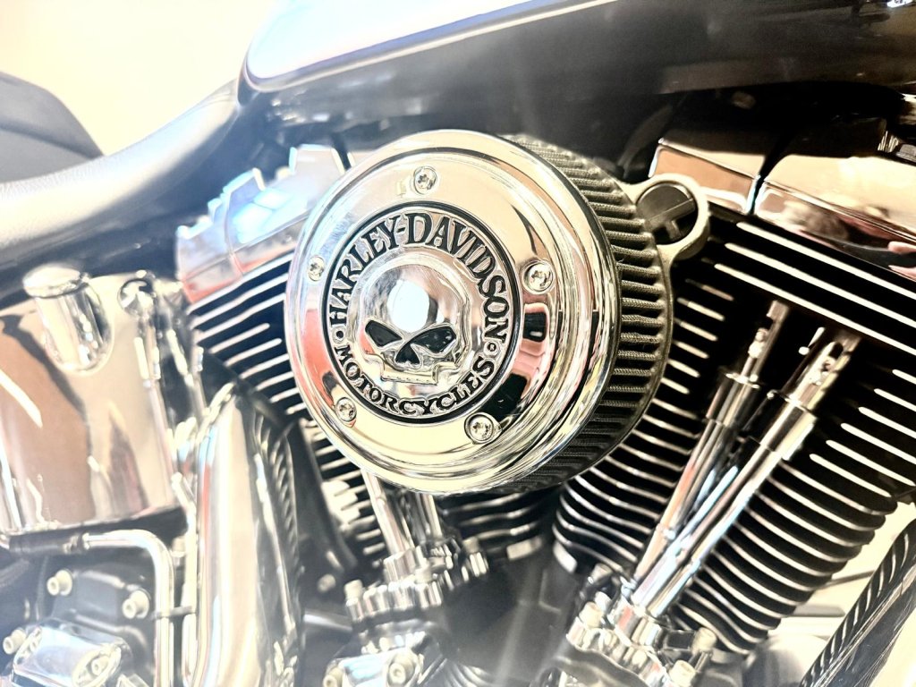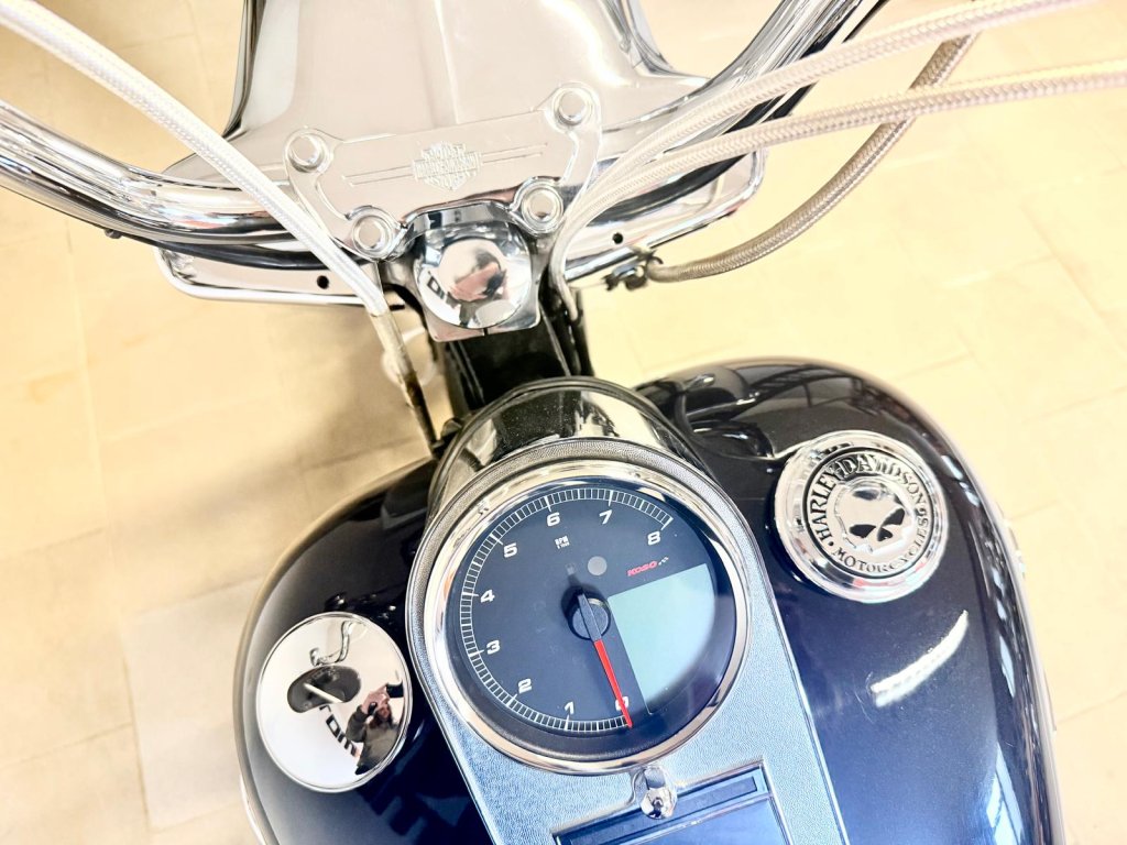 Krásně nastrojený motocykl - originální doplňková kola Road Winder včetně kotoučů a řemenice (v originálu na modelu FLSTSE3 CVO) chromované spodky vidlic. Dále originál HD dolňkové stupačky řidiče, brzdový, řadící pedály a hefty. Laděné výfuky Vance and Hines a otevřené sání. Multifunkční tachometr Koso HD-05. Dále chromované kryty zadní kyvné vidlice, chromované domečky, kryt víčka nádrže a další - dopňků je opravdu hodně. Na motocyklu je proveden základní servis - nové náplně včetně fitlru, nové svičky, přední a zadní brzdové destičky. V ceně je přihlášení,roční záruka a nová gelová baterie.
