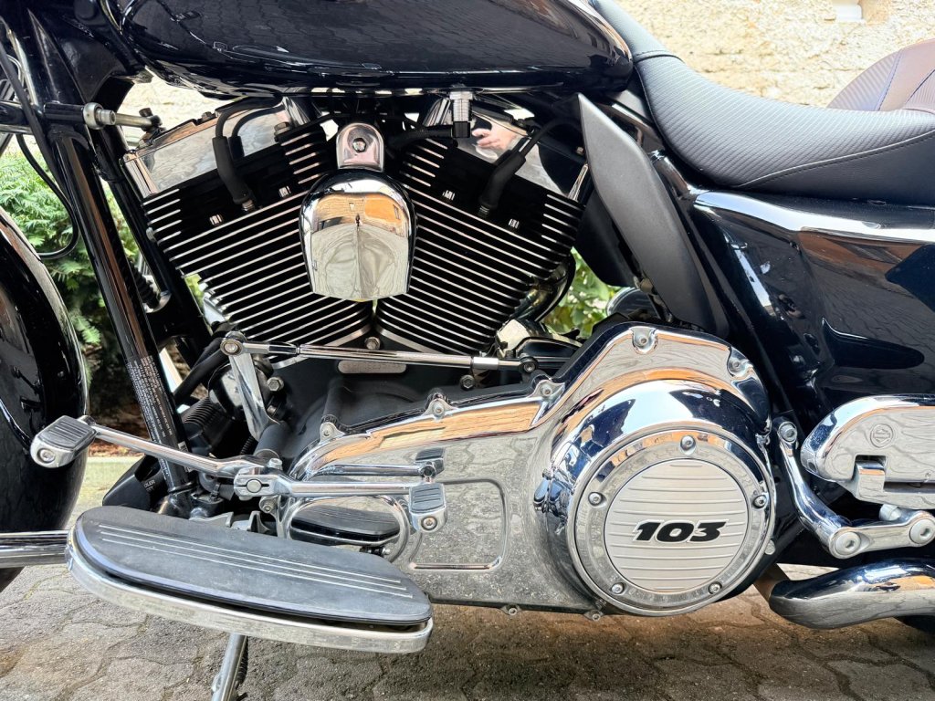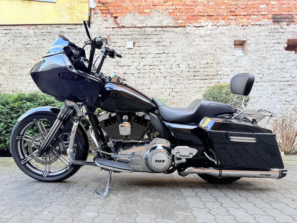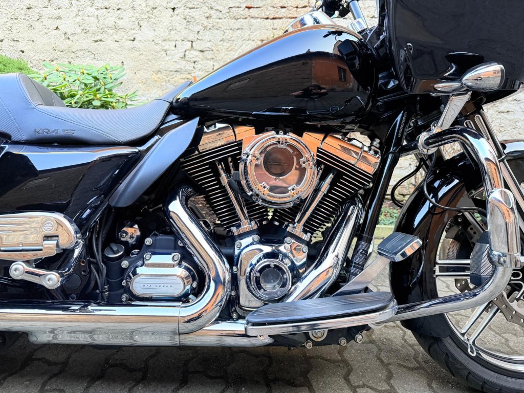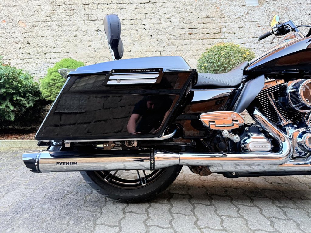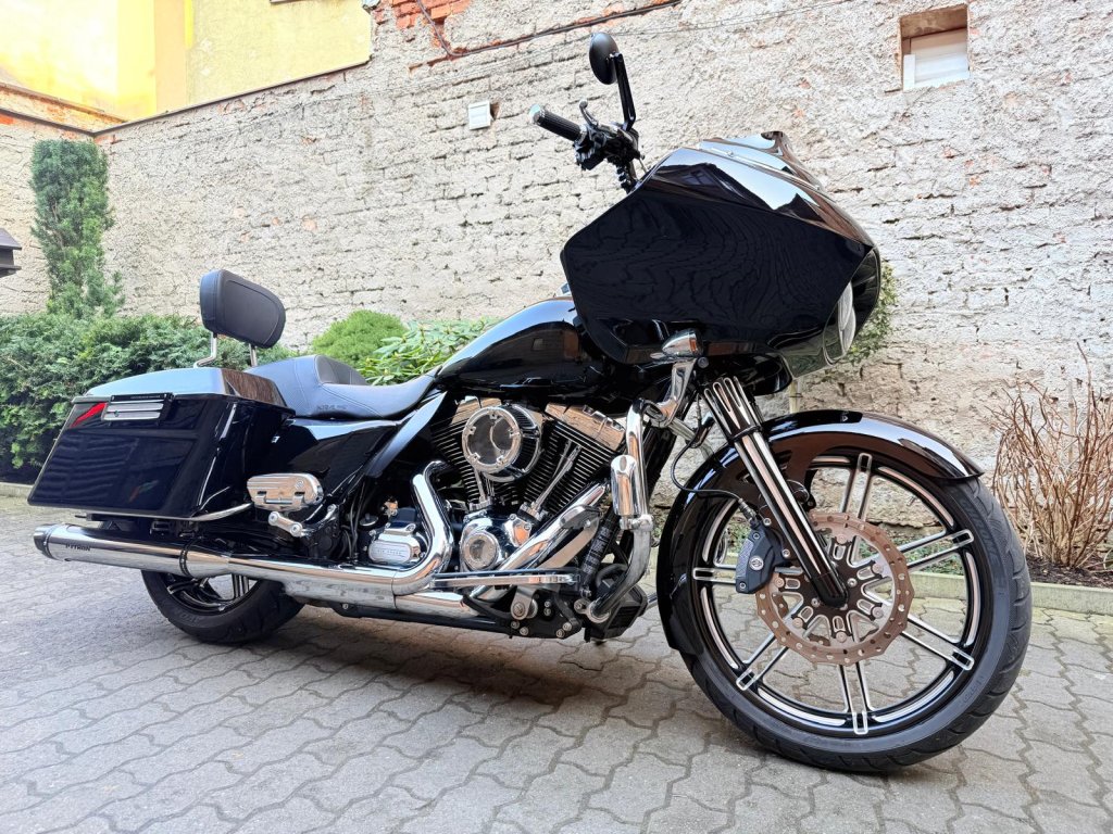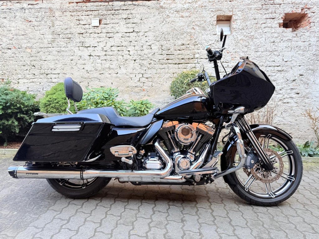 Harley-Davidson FLTRX Road Glide Custom.Motockyl prošel lehkou úpravou v podobě kol Arlen Ness 21x3.5" a 18x5.5" kotoučů, vidlic včetně progresivních pružin, sání a stavitelná řidítka.Dále gelové sedadlo Saddlemen Kraus,plexi Khrome Werks s lištou od PM, výfuky Python,zrcýtka,chromované páčky,anténa,100W repro a další. V ceně kompletní náplně a nová gelová baterie.